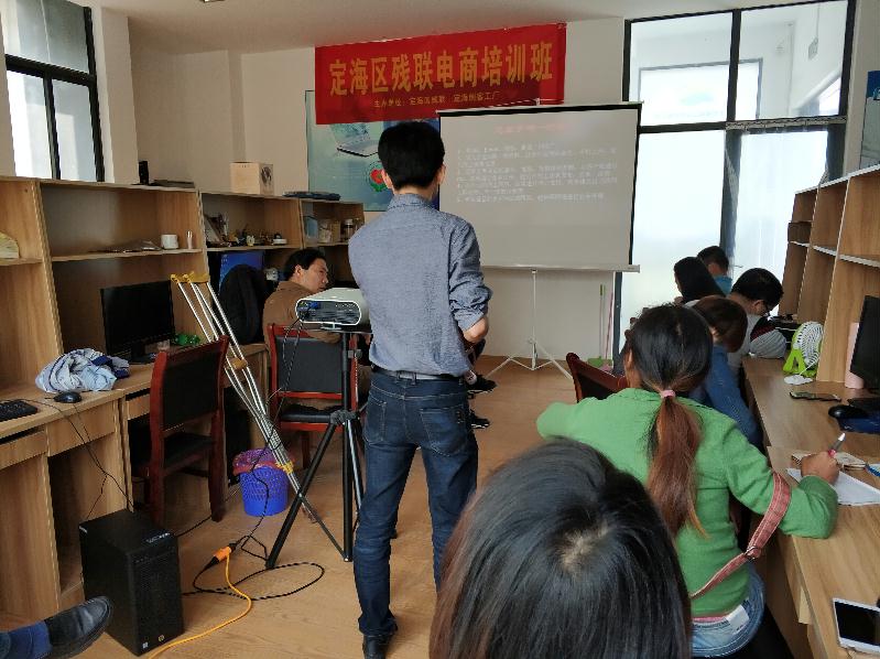4月28日,定海区残联和区残疾人创客工厂(省级残疾人创业基地)在定海区兴舟大道联合举办了一期残疾人电商创业培训班,来自全区的15名残疾人参加了此次培训班。