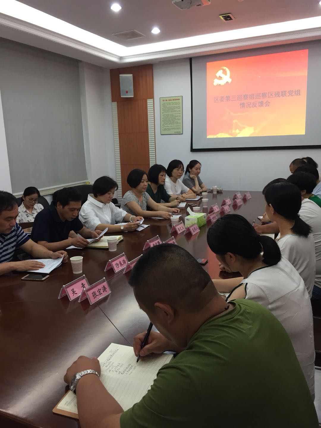 反馈会上,区委第三巡察组章守腾组长首先反馈了巡察意见,随后吴慧琴主任对下一步的整改提出了明确具体的要求,区残联党组书记袁燕江同志代表党组作了表态发言,最后,屠副区长对巡察整改工作作了重要指示。